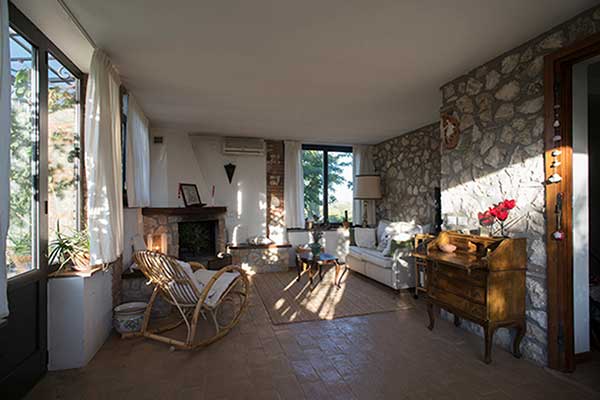 Suddiviso in due ambienti: una veranda chiusa con ampie vetrate che rendono lo spazio luminoso, accogliente e adatto al relax, dotata di TV, camino ed aria condizionata; il secondo ambiente è composto da una zona pranzo con annesso angolo cottura e un salottino con camino. Bagno di servizio con lavabo e wc. Portico esposto ad ovest adatto a tranquille colazioni e romantiche cene con tramonto.